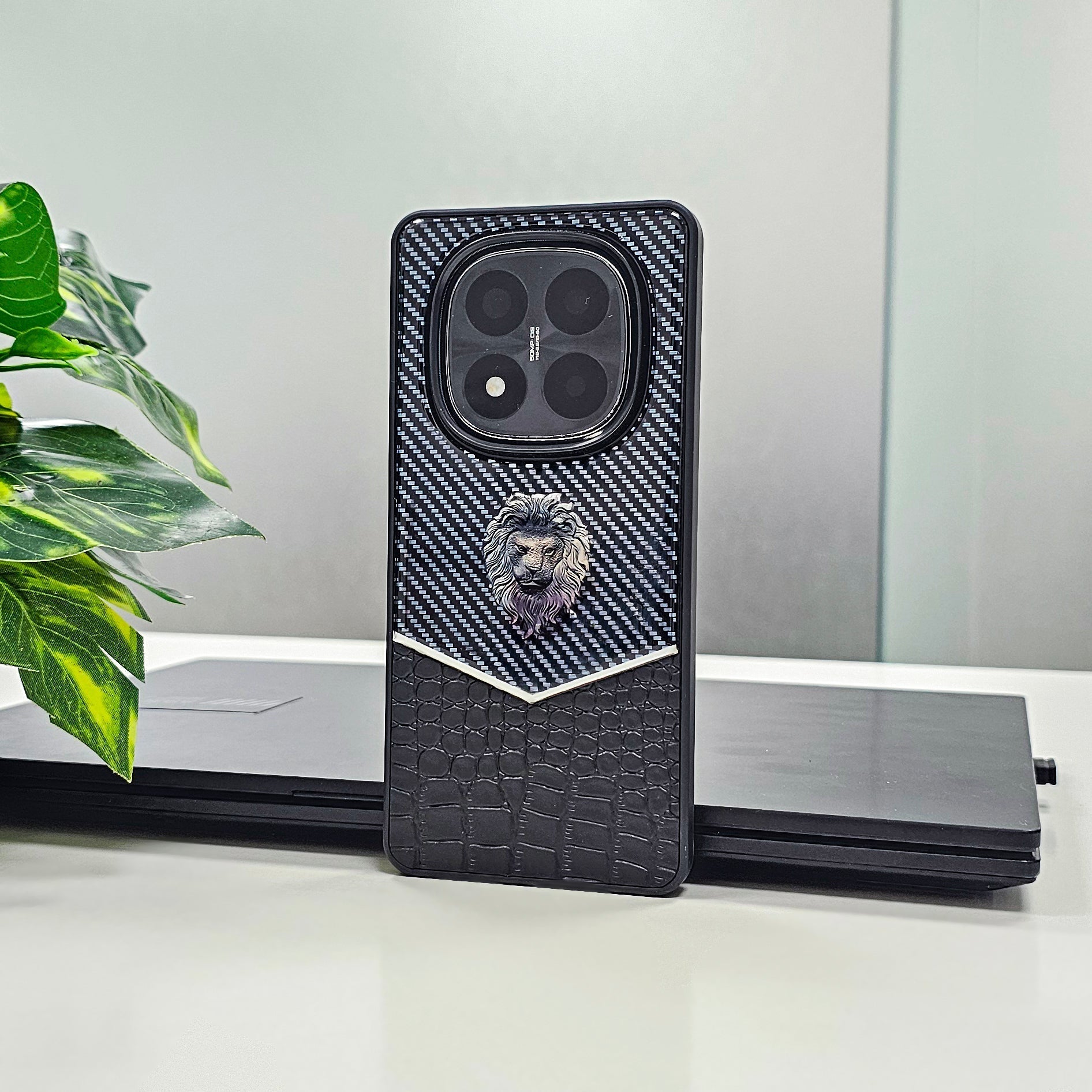 Redmi Note 14 Pro+ 5G Luxury Lion Pattern Leather And Liquid Silicone Case