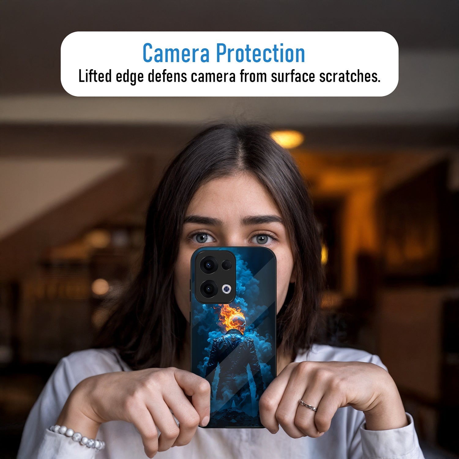Oppo Reno 13 5G Premium Acrylic Shockproof Glass Back Case (Chains of Fire)