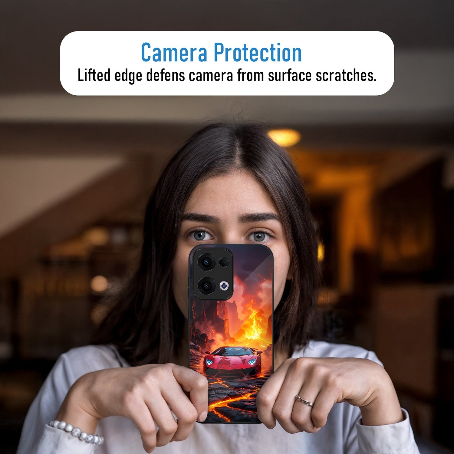 Oppo Reno 13 5G Premium Acrylic Shockproof Glass Back Case (Lamborghini Red)