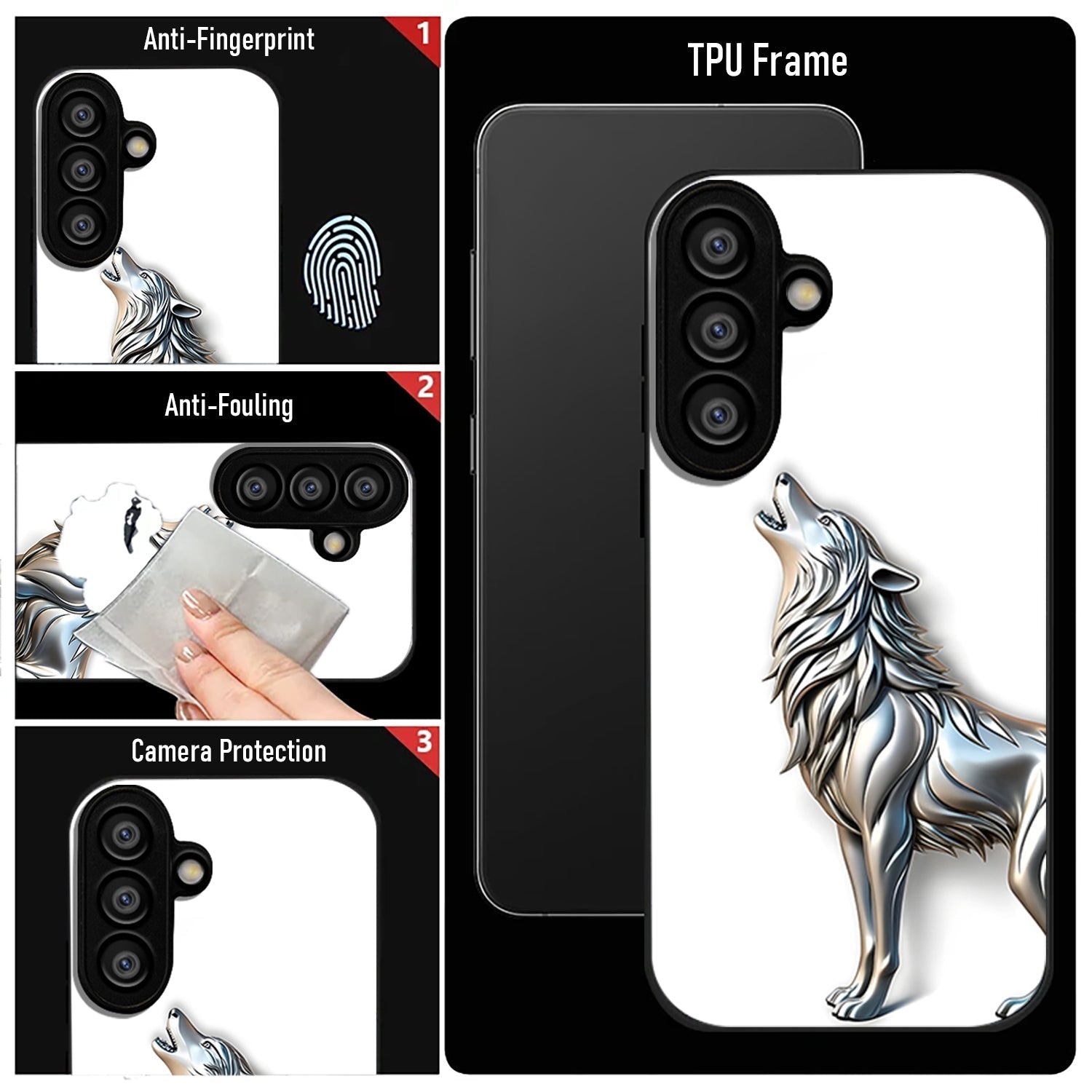 Samsung Galaxy A56 5G Premium Acrylic Shockproof Glass Back Case (Silver Wolf)