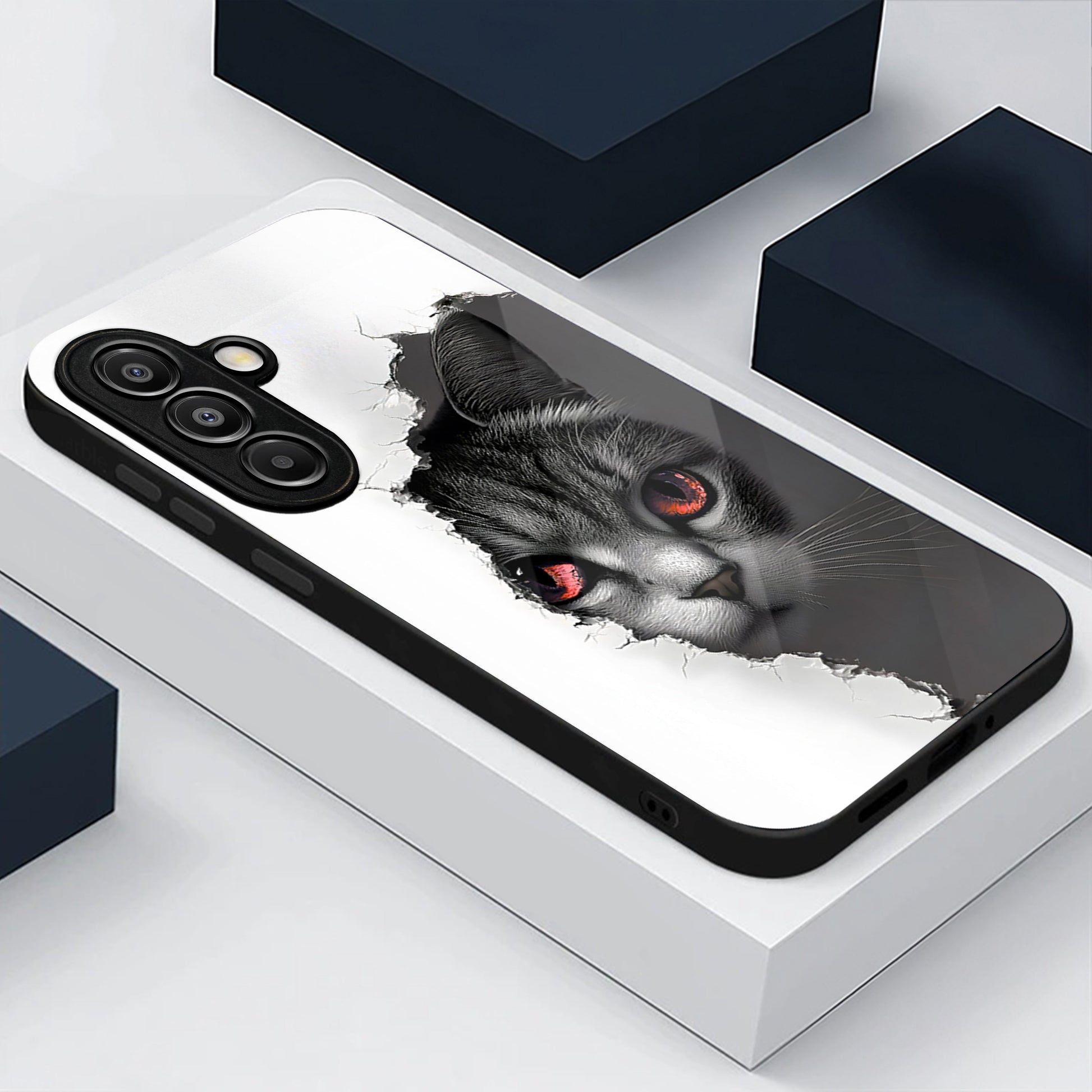 Samsung Galaxy A56 5G Premium Acrylic Shockproof Glass Back Case (White Cat)