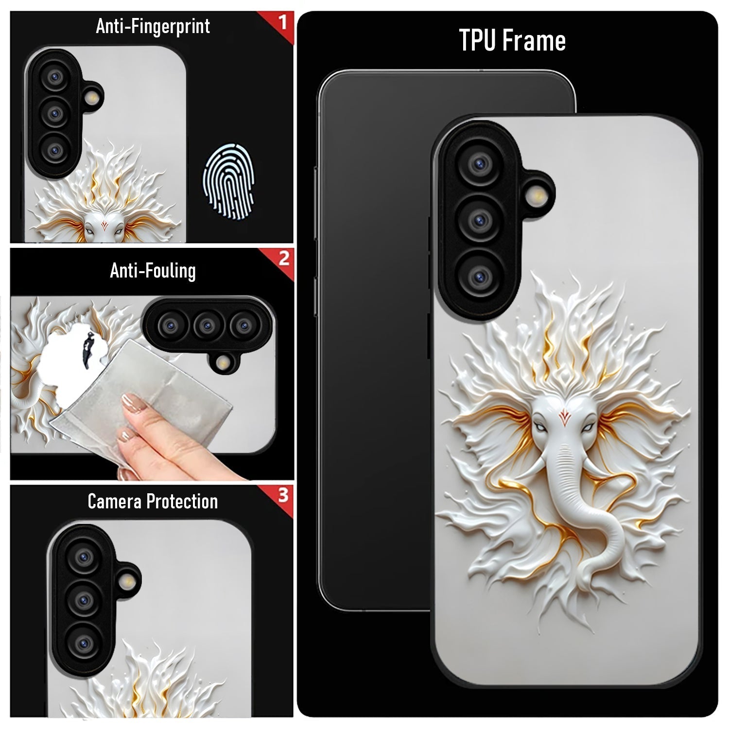 Samsung Galaxy A56 5G Premium Acrylic Shockproof Glass Back Case (White Ganesha)