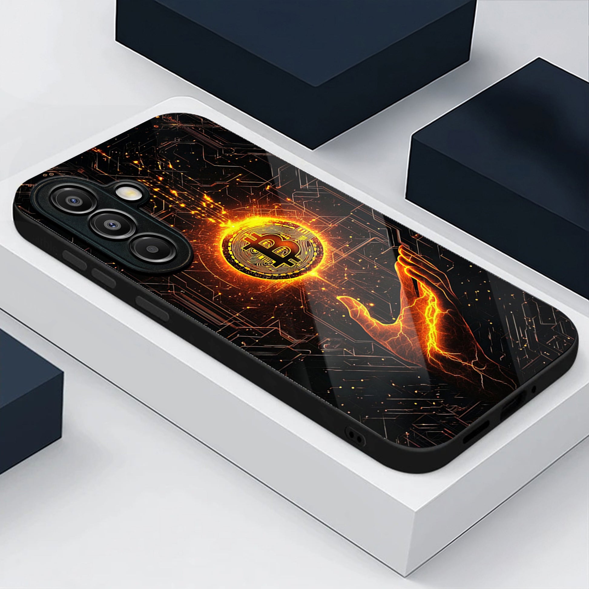 Samsung Galaxy A56 Premium Acrylic Shockproof Glass Back Case (Bitcoin Glow)