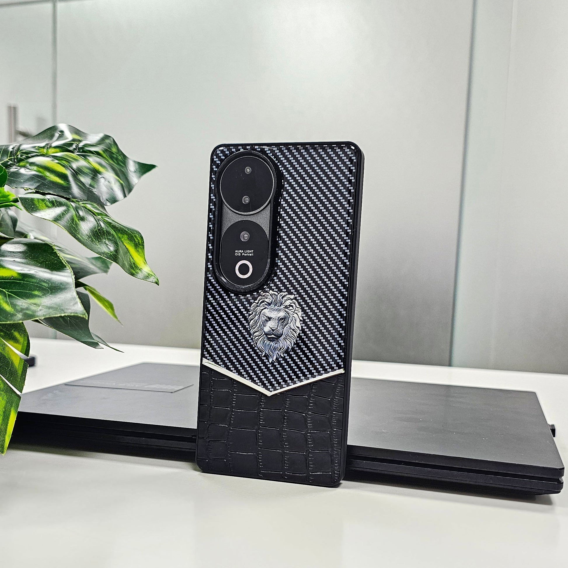 Vivo V40 5G Luxury Lion Pattern Leather And Liquid Silicone Case