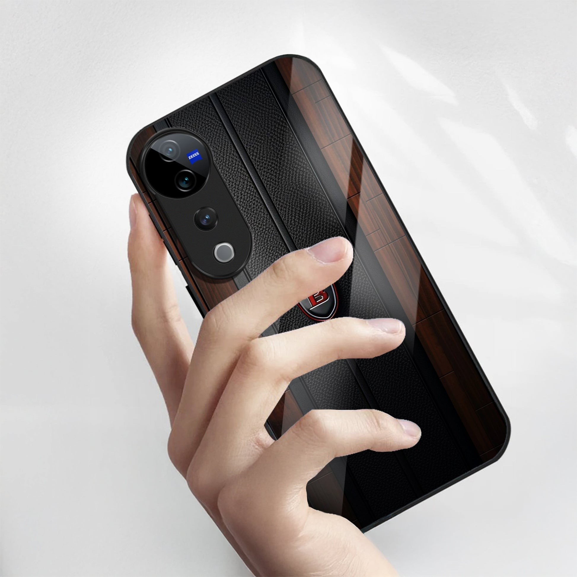 Vivo V40 Pro 5G Premium Acrylic Shockproof Glass Back Case (Carbon Oak)