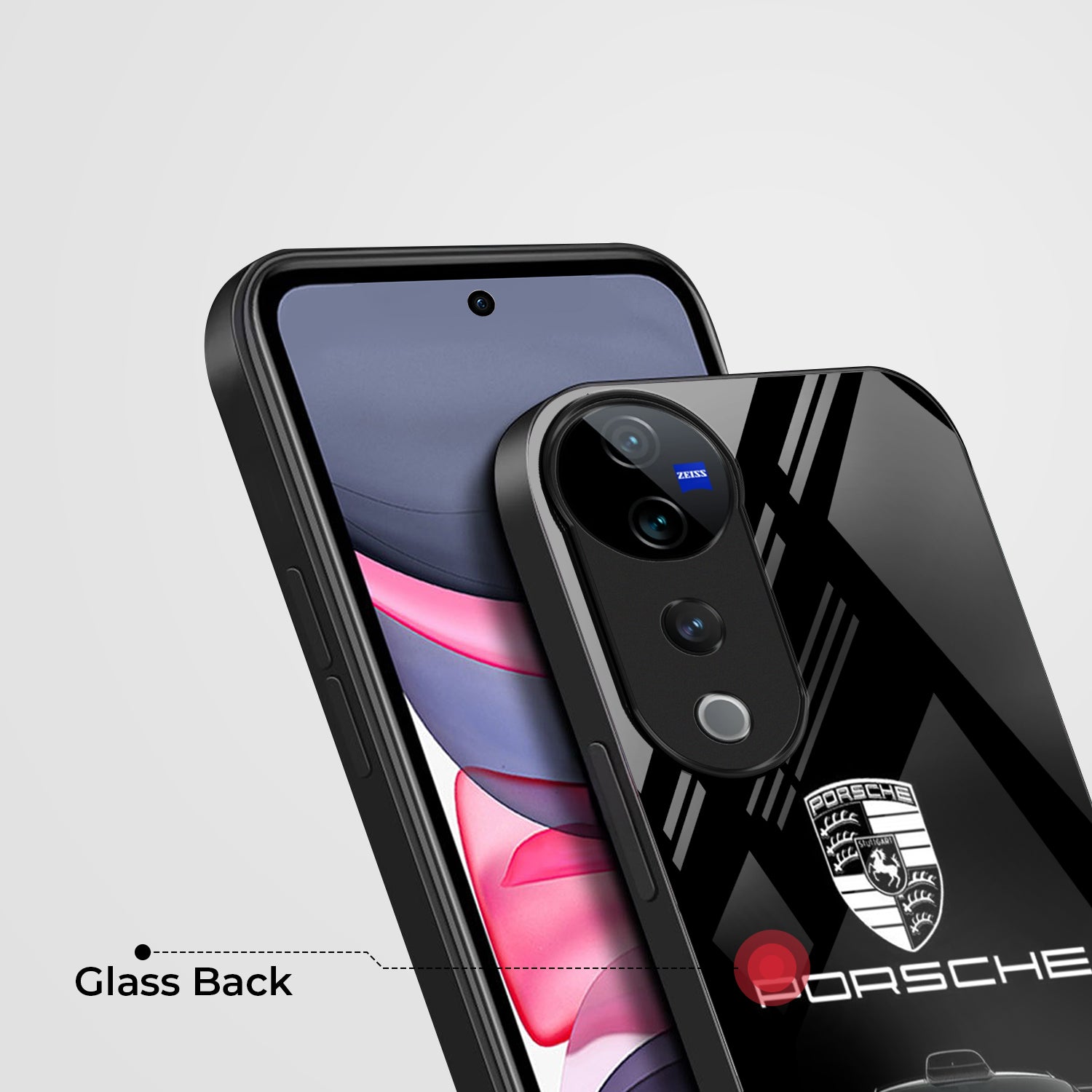Vivo V40 Pro 5G Premium Acrylic Shockproof Glass Back Case (Black Porsche)