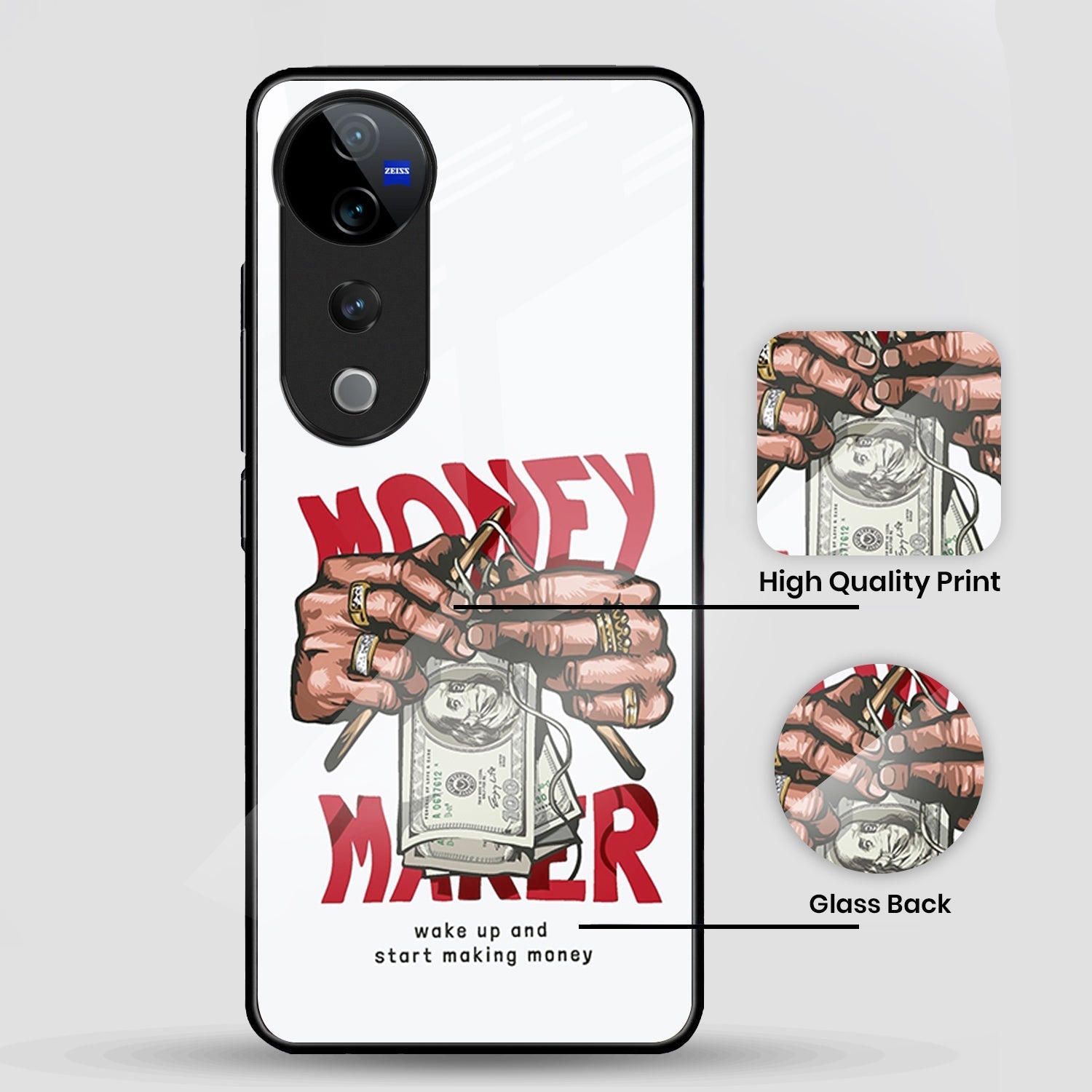 Vivo V40 Pro 5G Premium Acrylic Shockproof Glass Back Case (Money Maker)