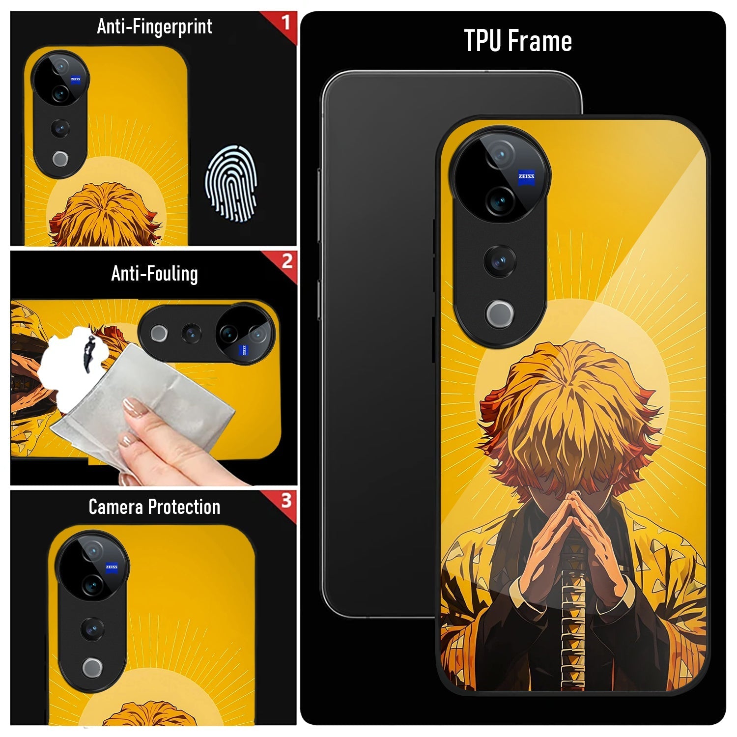 Vivo V40 Pro 5G Premium Acrylic Shockproof Glass Back Case (Zenitsu Agatsuma)