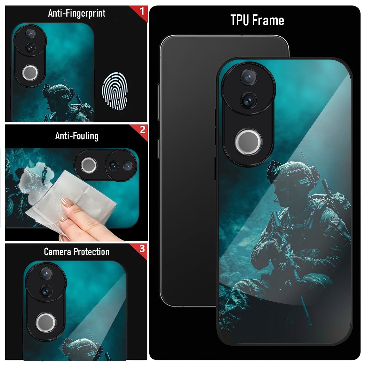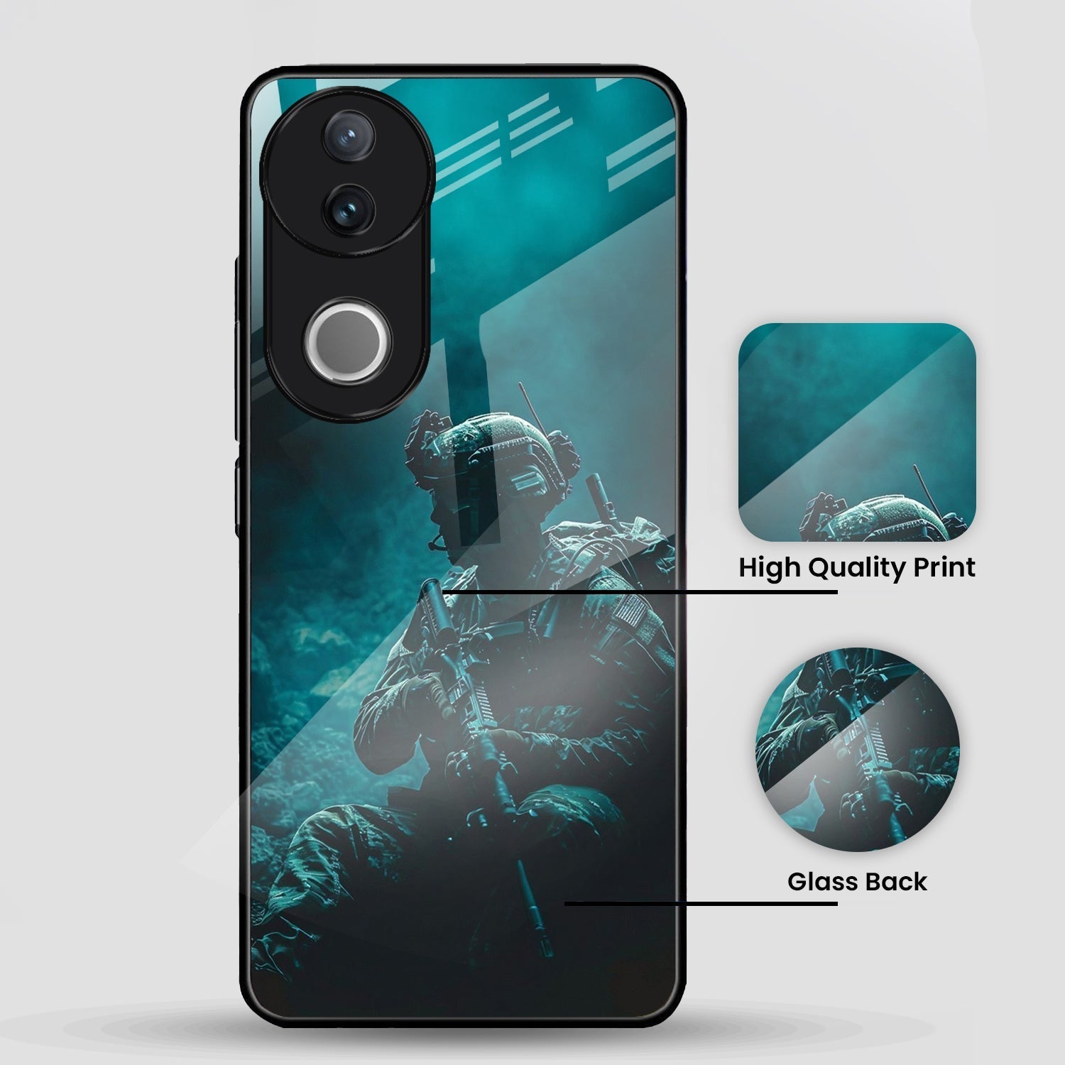Vivo V50 5G Premium Acrylic Shockproof Glass Back Case (Soldier Case)
