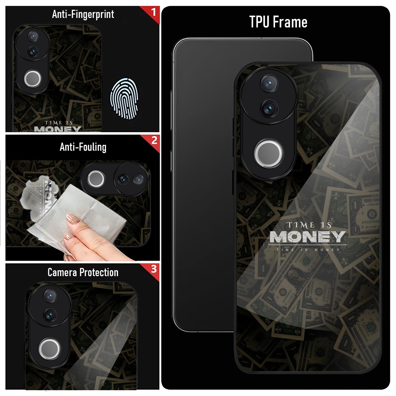 Vivo V50 5G Premium Acrylic Shockproof Glass Back Case (Time is Money)