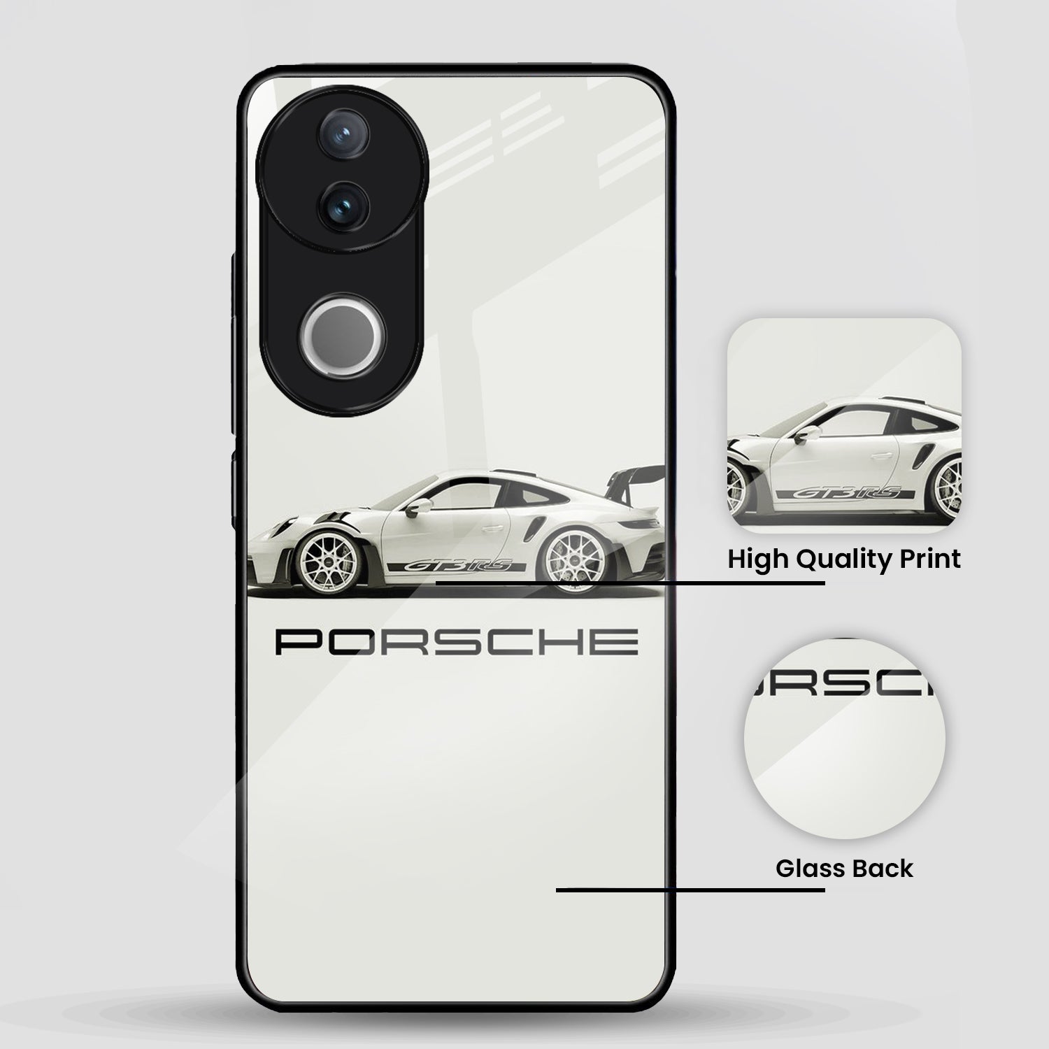 Vivo V50 5G Premium Acrylic Shockproof Glass Back Case ( White Porsche )